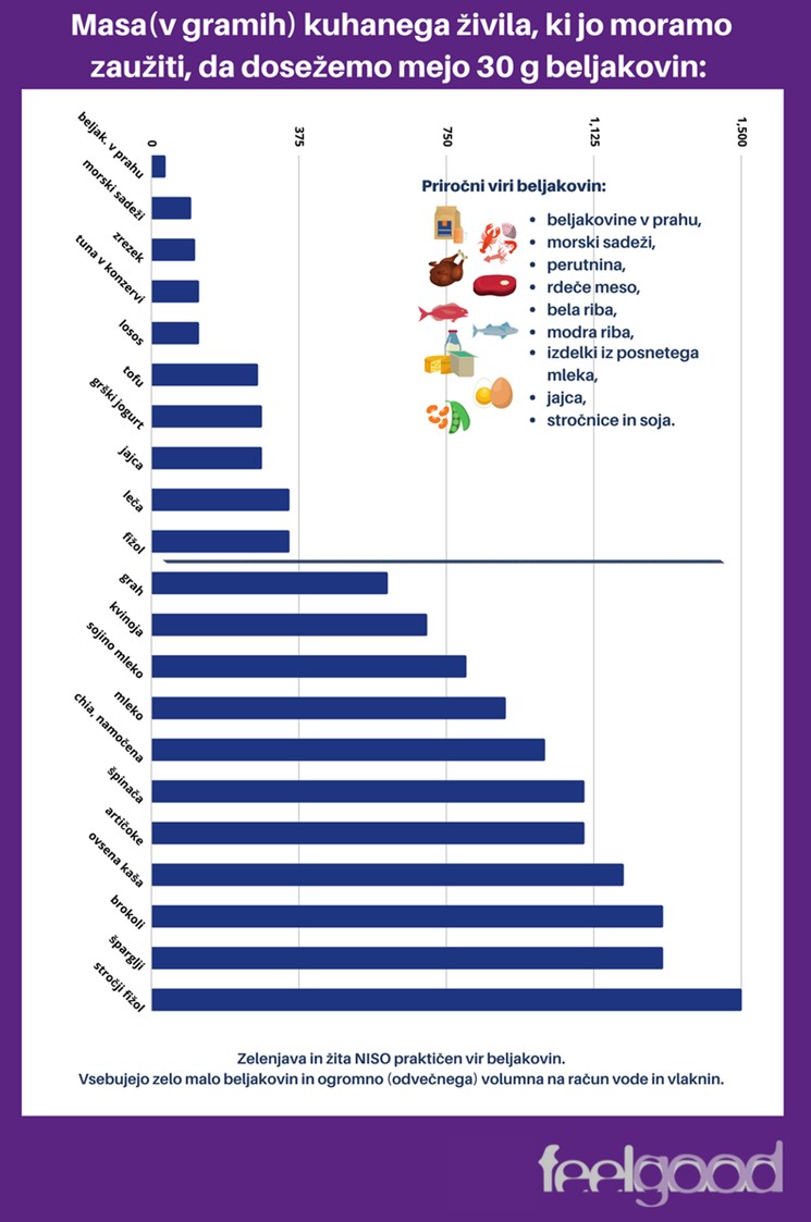 Manj bo verjetno že premalo, malo več (tja do 2,5 g/kg TT) pa lahko koristi tistim, ki imate radi beljakovinska živila oz. vam dobro denejo, trenirate s ciljem povečati mišično maso ali si želite izgubiti odvečno maščobo.