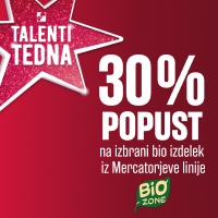 Od 24. septembra do 17. decembra 2023 ponovno spremljajte oddajo, Slovenija ima talent in vsako nedeljo spoznajte nove Mercatorjeve talente tedna – tedenske ugodnosti ali izdelke po posebnih akcijskih cenah. Pardon, po talentiranih cenah.